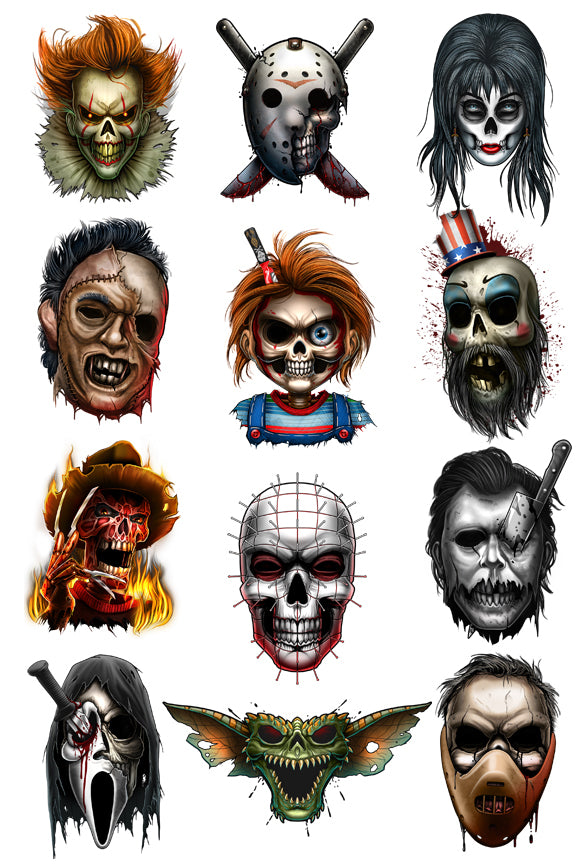 Horror Movie Temporary Tattoos Set Of 12 Scary Tattoos Etsy
